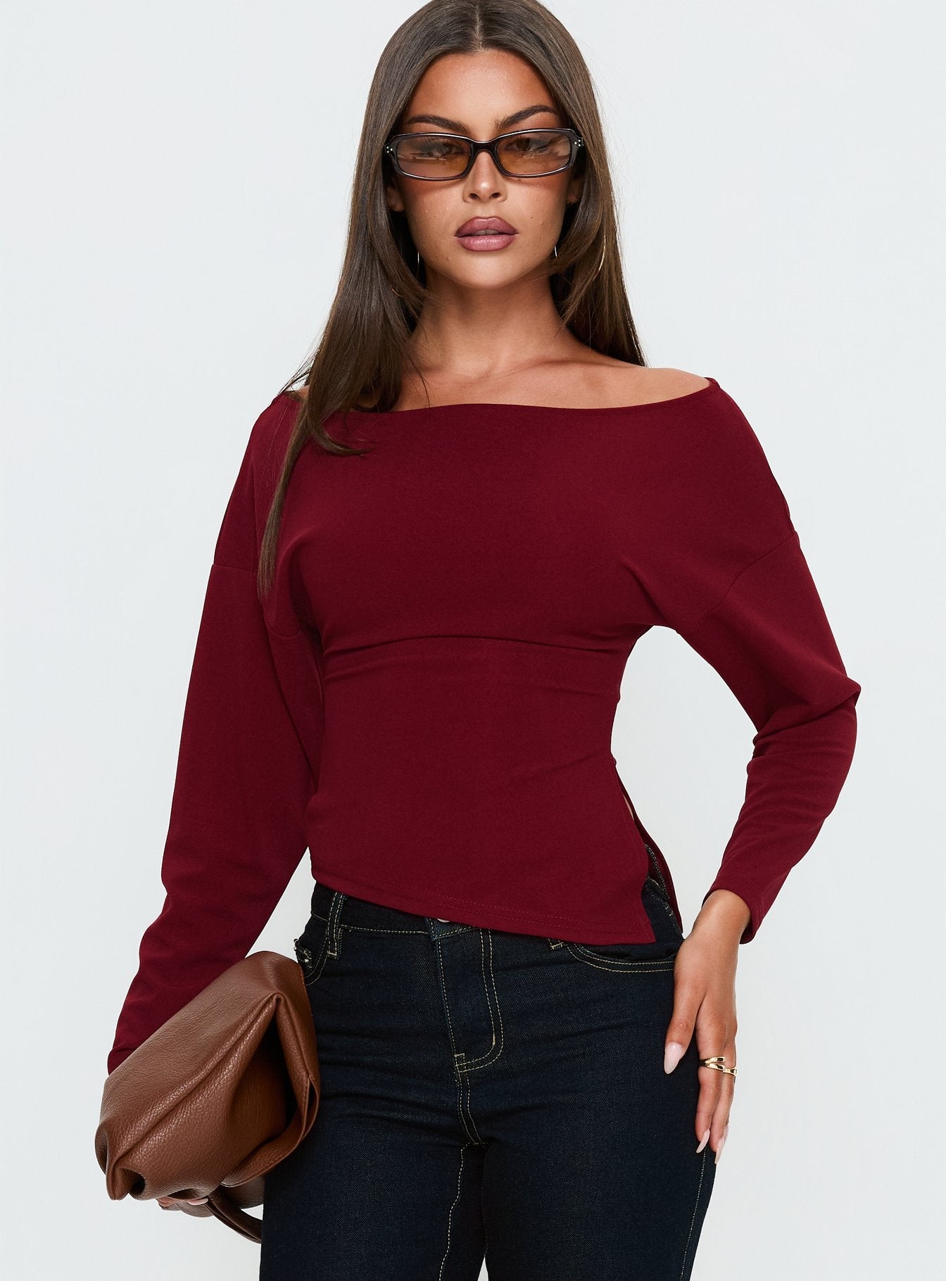 Cieara Off Shoulder Long Sleeve Top Burgundy
