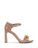 All eyes will be on you as you strut in the Aurelia sandal thanks to the towering flat block heel and skinny ankle strap. The oversized chain accent adds a pop of sophisticated shine to any outfit.