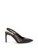 The Brendie pump adds sophistication to any outfit thanks to its towering heel. pointed toe. and sleek slingback design. The soft suede finish and pewter-toned buckle further the high-quality appeal of this open-back pump.