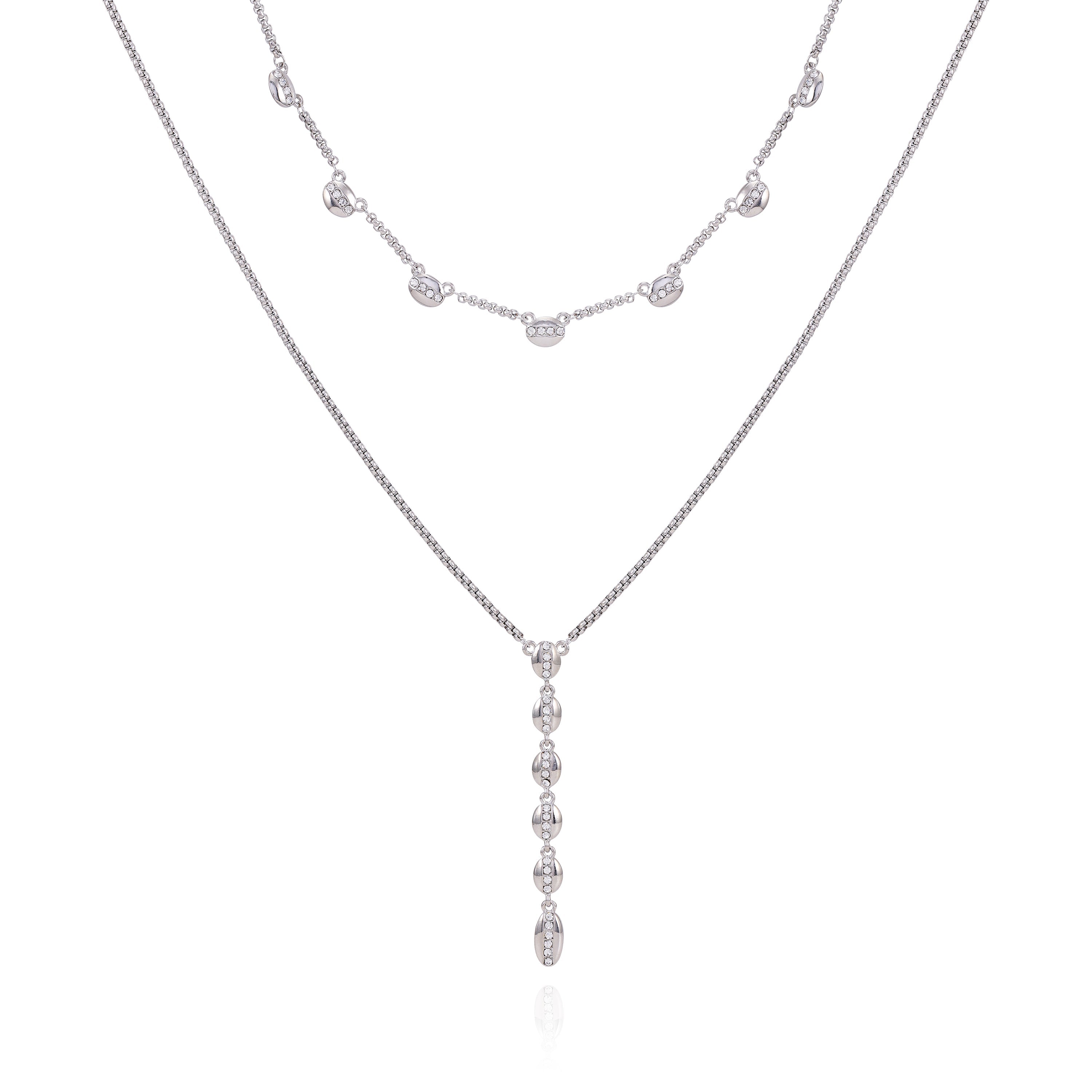Featuring multiple layers of delicate silvertone chains adorned with shimmering crystal stones. This elegant design adds depth and sparkle. making the necklace a sophisticated choice for enhancing both everyday and formal outfits.