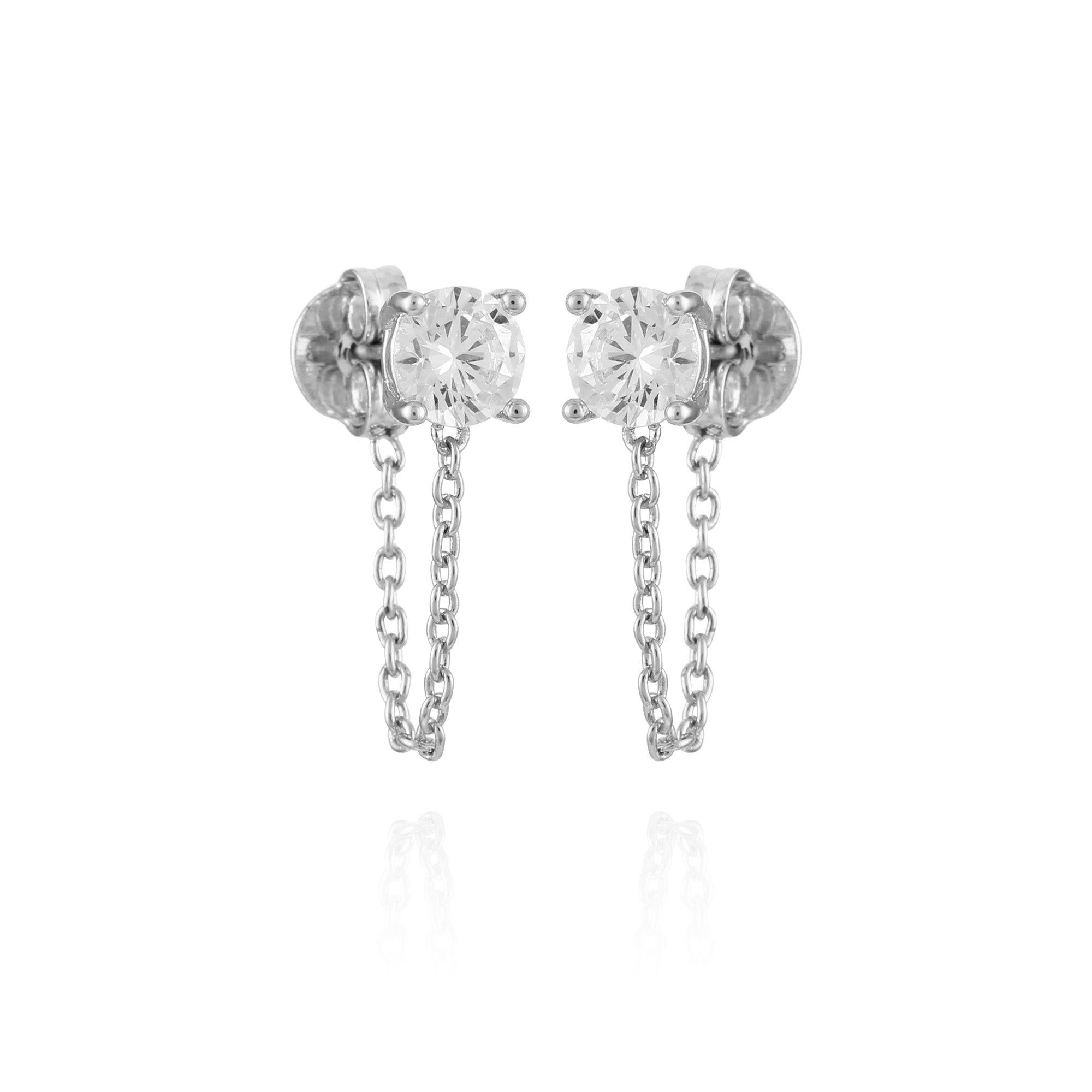 The silver-tone front to back dangle chain clear glass stone stud earring is the perfect accessory for a stylish and sophisticated look. The clear glass stone stud adds a touch of glamour. making these earrings perfect for special occasions or everyday wear.
