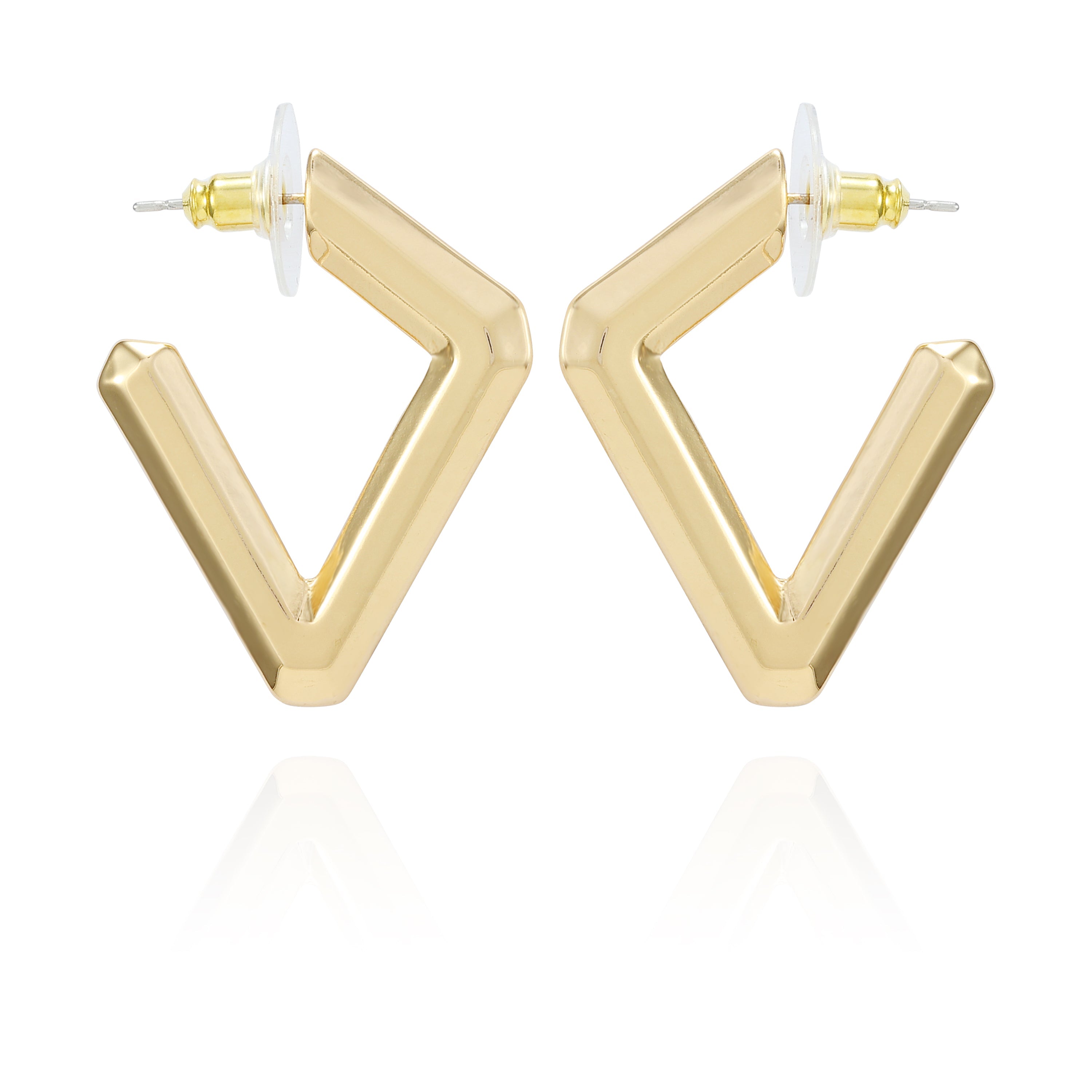 A contemporary twist on classic hoops with their unique open diamond-shaped design. The sleek goldtone finish adds a modern. polished touch. making these earrings a chic accessory for elevating any outfit.