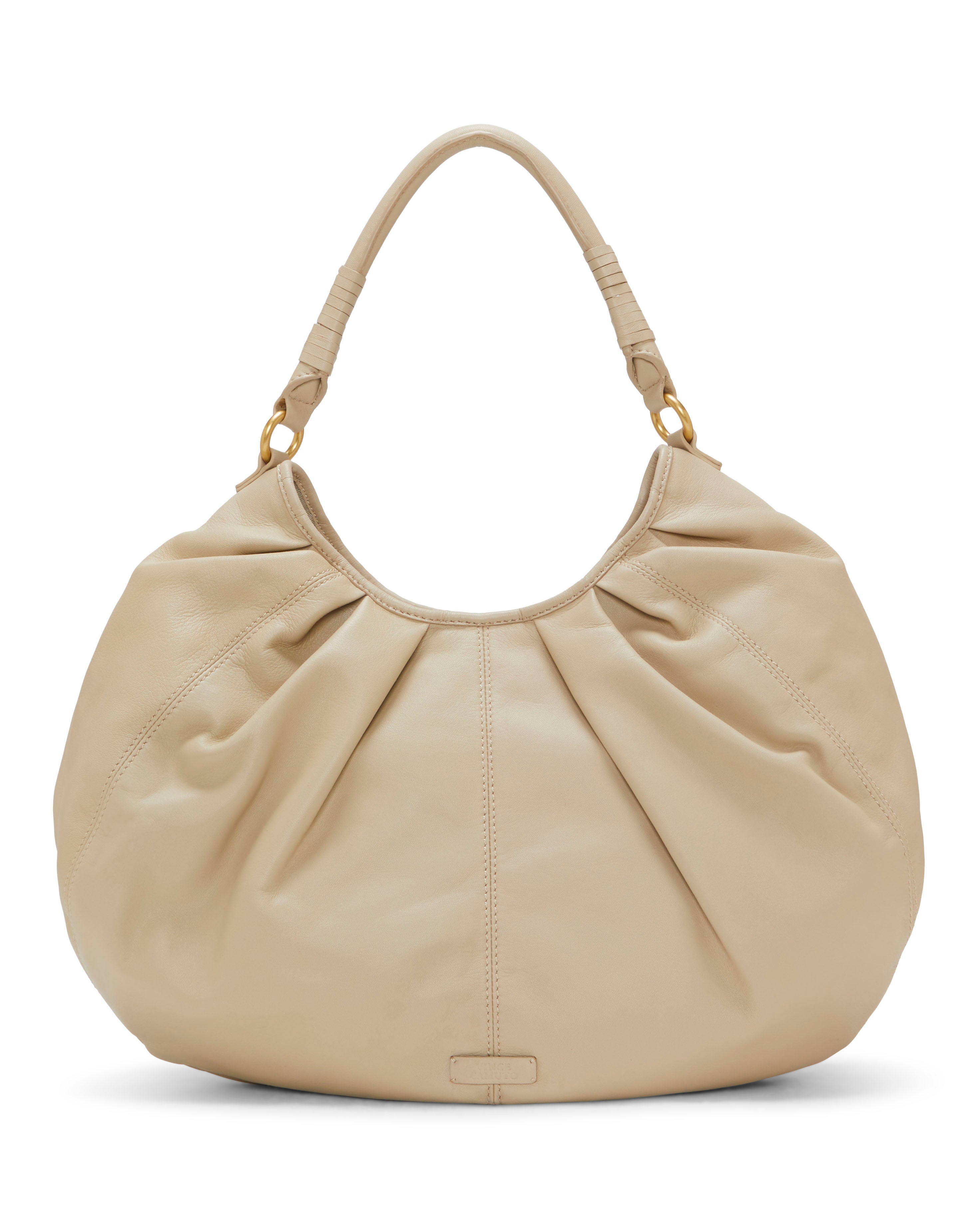 Fashionable and functional. the Farin shoulder bag from Vince Camuto delivers high-quality touches to a classic style. The rounded silhouette features a cool slouchy design. a spacious interior. and a sturdy handle. Crafted with a smooth leather material that ensures durability.