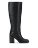 A chunky tall boot is a closet must-have and we love the Gibi's take on the silhouette. Designed with a rounded toe. the boot - now available in a perfect-fit. narrow-calf version - features a micro-platform and walkable block heel. Its padded footbed ensures all-day comfort. Wear it with a minidress this season and next.