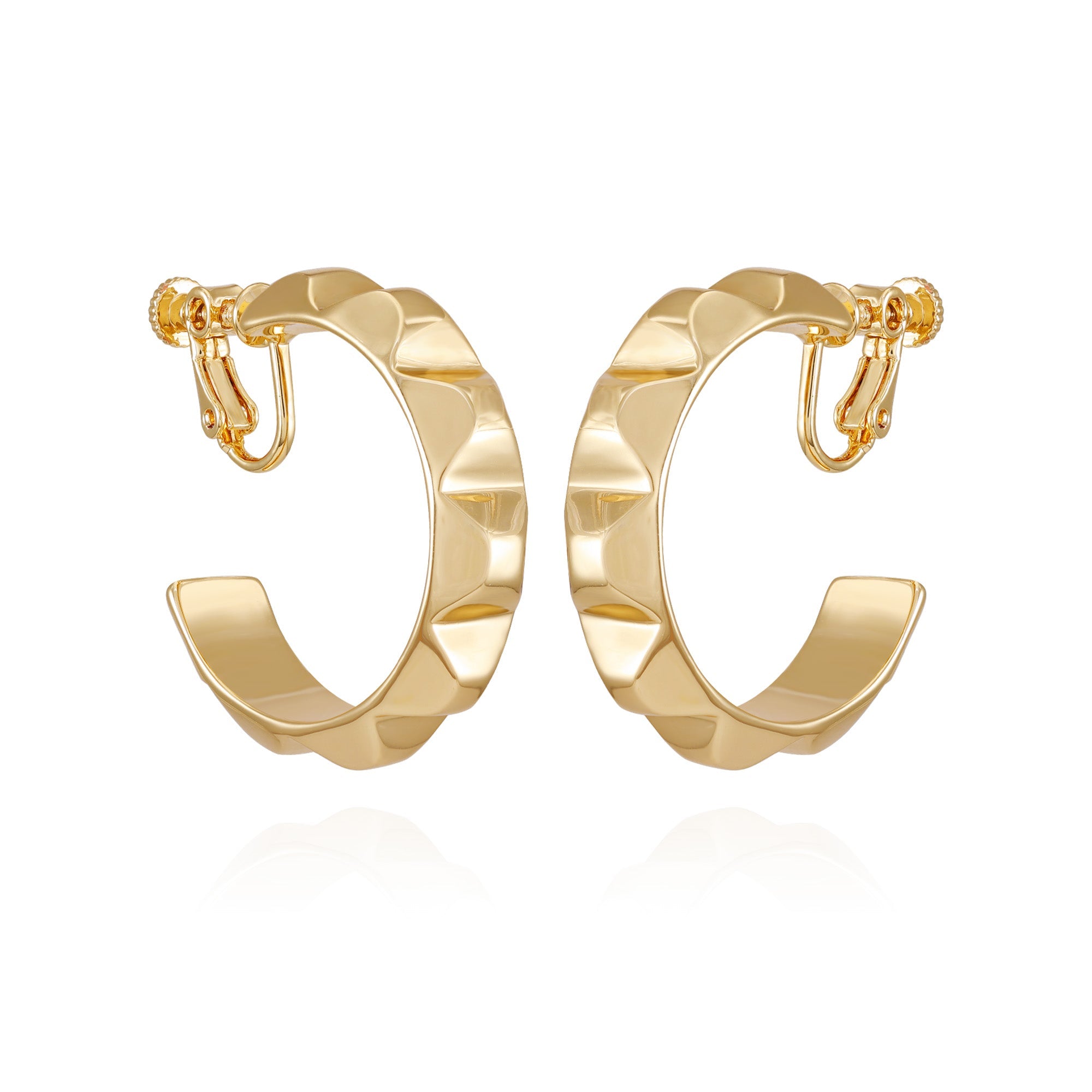 a bold. modern look with their chunky design and rich goldtone finish. The clip-on style ensures a secure and comfortable fit. making these earrings a standout accessory that adds a touch of contemporary elegance to any outfit.