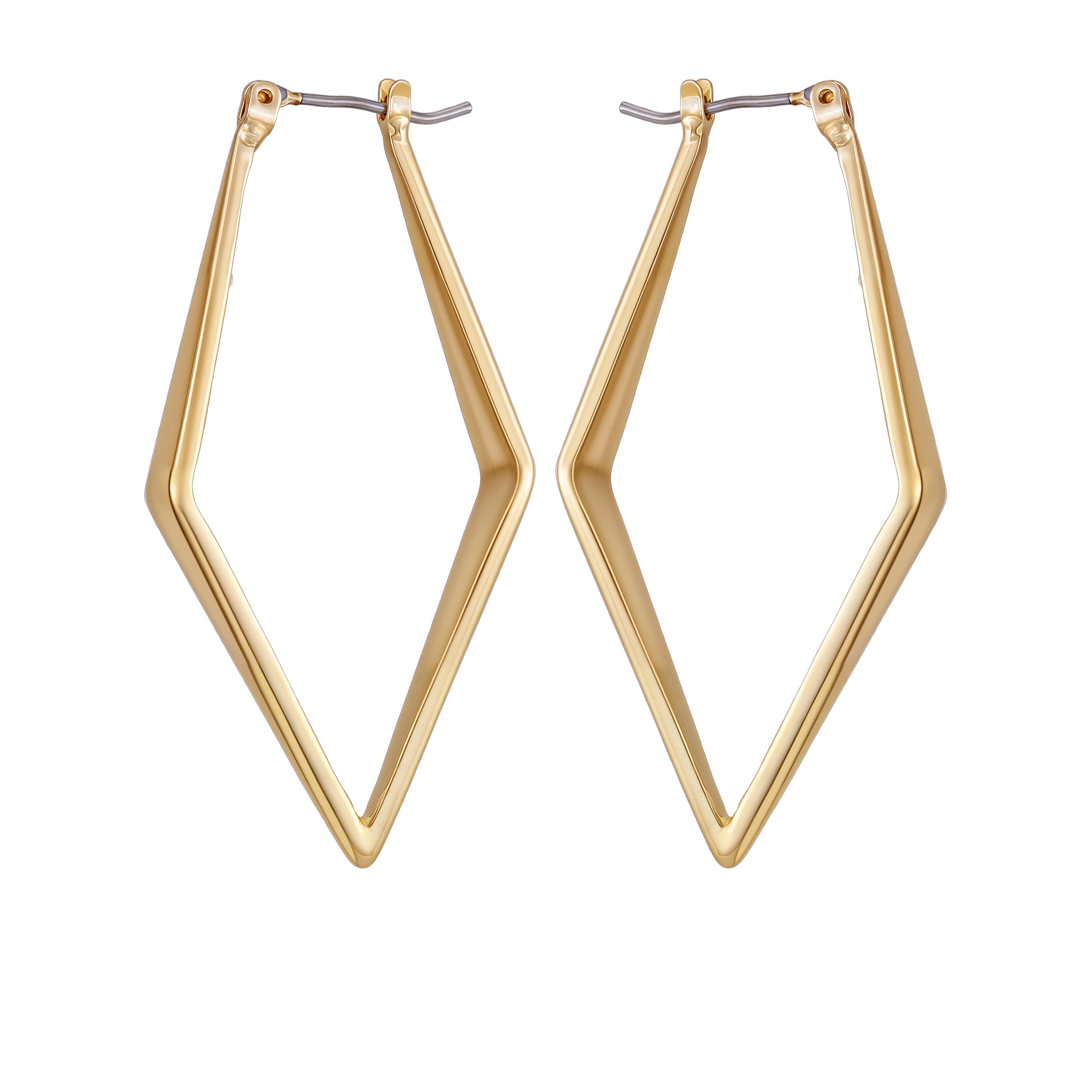 Sleek and stylish. these Vince Camuto hoop earrings feature a modern diamond-shaped silhouette in polished gold-tone. A versatile accessory for any occasion.