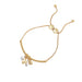 A delicate goldtone chain adorned with elegant gilded leaf charms. The adjustable slider clasp allows for a customizable fit. making this bracelet a versatile and stylish accessory that adds a touch of nature-inspired elegance to any outfit.
