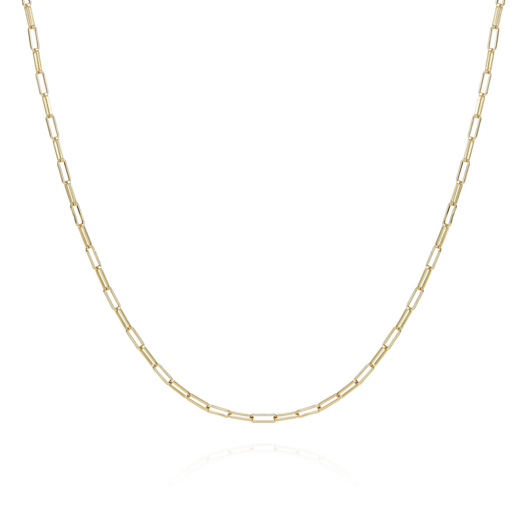 This necklace features a thin. gold-tone chain with a series of interconnected paper-clip like links that create a lightweight and delicate look. Whether worn alone or layered with other necklaces. the dainty link chain necklace is the perfect accessory for adding a touch of glamour to your look.