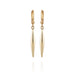 These earrings feature a gold-tone huggie hoop design that hugs the ear comfortably. with a spear dangle drop that adds a touch of elegance.