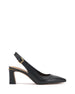 The Hamden updates a timeless point-toe pump with a slender metal rand and architectural covered heel. Crafted of leather. the mid-height pump stays put thanks to a slingback strap with a panel of stretch goring. Wear the forever-fashionable style to work with a printed shift or for date night in with ribbed cords.
