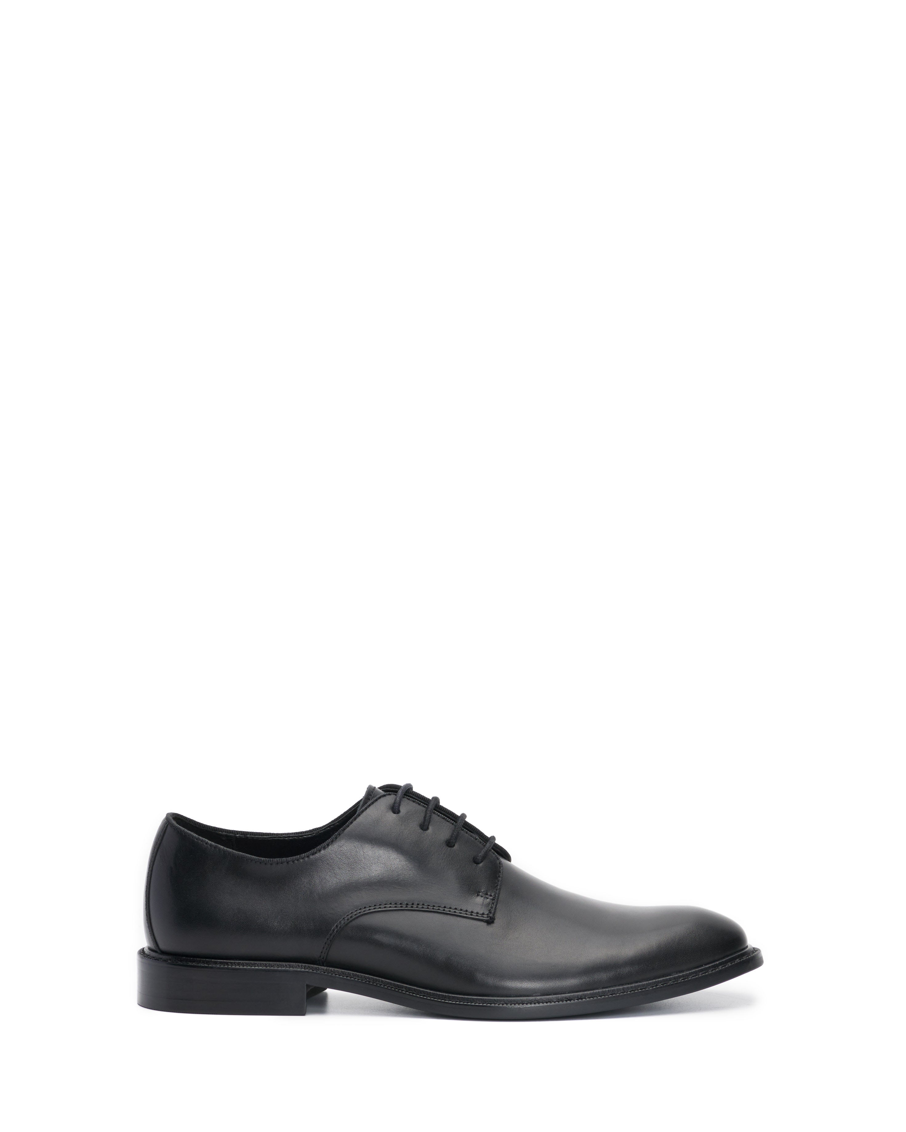This classic men's derby is crafted of smooth. dark leather. Designed to be dressed up or down. the timeless style looks as good with slim-fit jeans as it does a check suit.