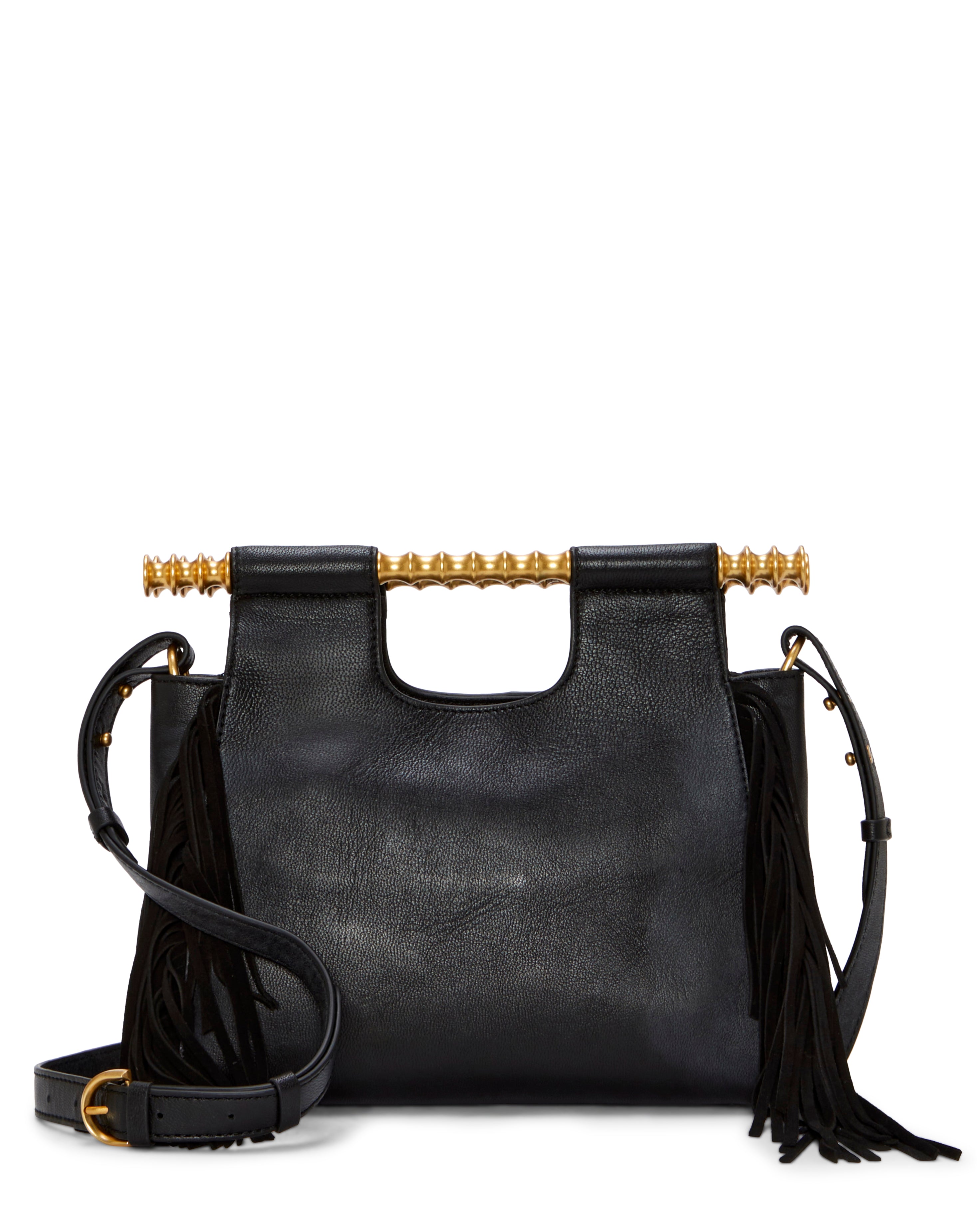 The Noemy crossbody bag flaunts unique appeal with its textured top handles and suede tassel accents. The removable shoulder strap allows you to rock as a clutch!