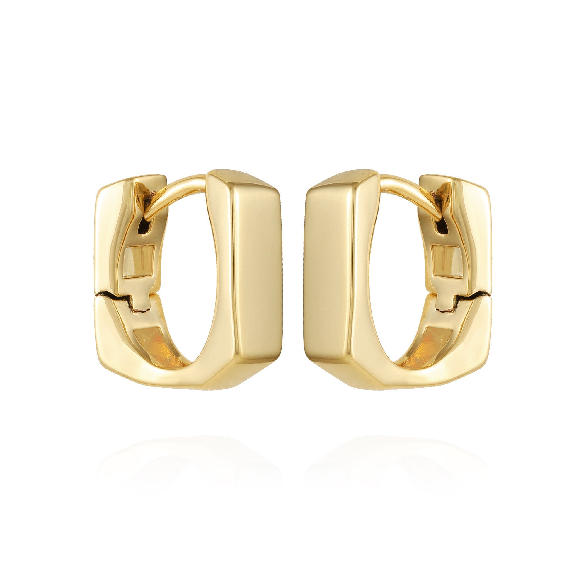A perfect balance of vintage and grandeur. these small rectangle huggie earrings are brass casted with a brass pin. Our gold-tone small rectangle earrings are simple and elegant that creates an eye-catching style versatile any outfit.